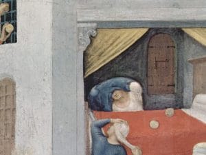 in foto: Il “Miracolo della dote” di San Nicola dipinto da Gentile da Fabriano (1425), Polittico Quaratesi, Galleria degli Uffizi, Firenze.